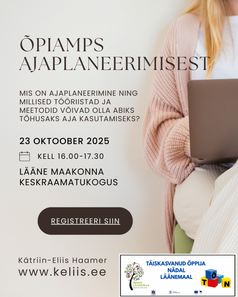 Täiskasvanud õppija nädala raames on tulemas ajaplaneerimise õpiamps. See toimub Lääne Maakonna keskraamatukogu teisel korrusel.